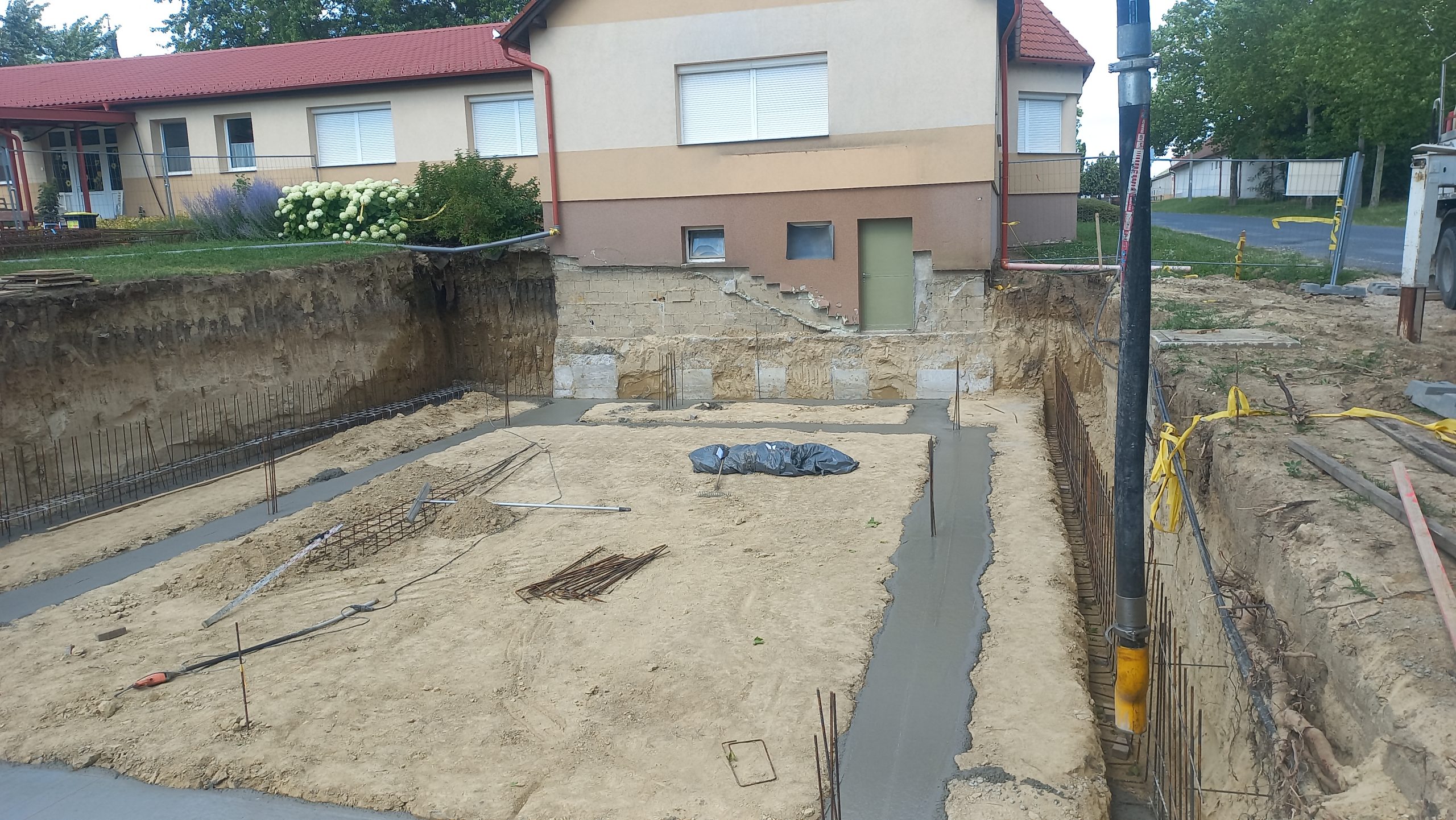 A meglévő terület egészét oktatási és sportolási célú épületek összesége képezi, melyek megjelenésükben a bennük található funkciókat tükrözik. Az épületek léptéke is ennek megfelelően alakul. A meglévő óvodaépület most tornaszobaként használt helyiségét némileg át kell alakítani az új rész kialakítása miatt. Ennek a helyén egy közlekedő folyosó, egy akadálymentes mosdó, valamint egy kisebb foglalkoztató kerül kialakításra. A meglévő épülethez közvetlenül csatlakozó részbe egy, a tervezett két szintet összekötő belső lépcsőház kerülne kialakításra, melyhez a szükséges csoportszoba és az elvett tornaszoba funkció kerülne kialakításra a földszinten, valamint a szuterén szinten.